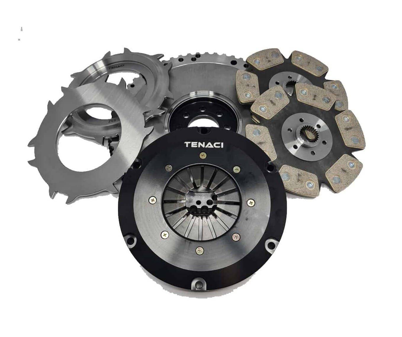 Vissa Tenaci svänghjul har en modulär design som möjliggör byte mellan 184, 200 eller 240 mm bakplatta.